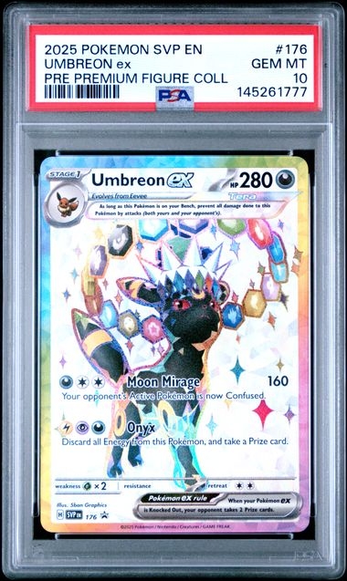 176 SVP Umbreon ex - PSA 10 PrisNOK2 949,00 inkl. mva. På lager: 1 stk. Antall Kjøp Ønskeliste Lagerstatus: På lager: 1 stk. Del dette